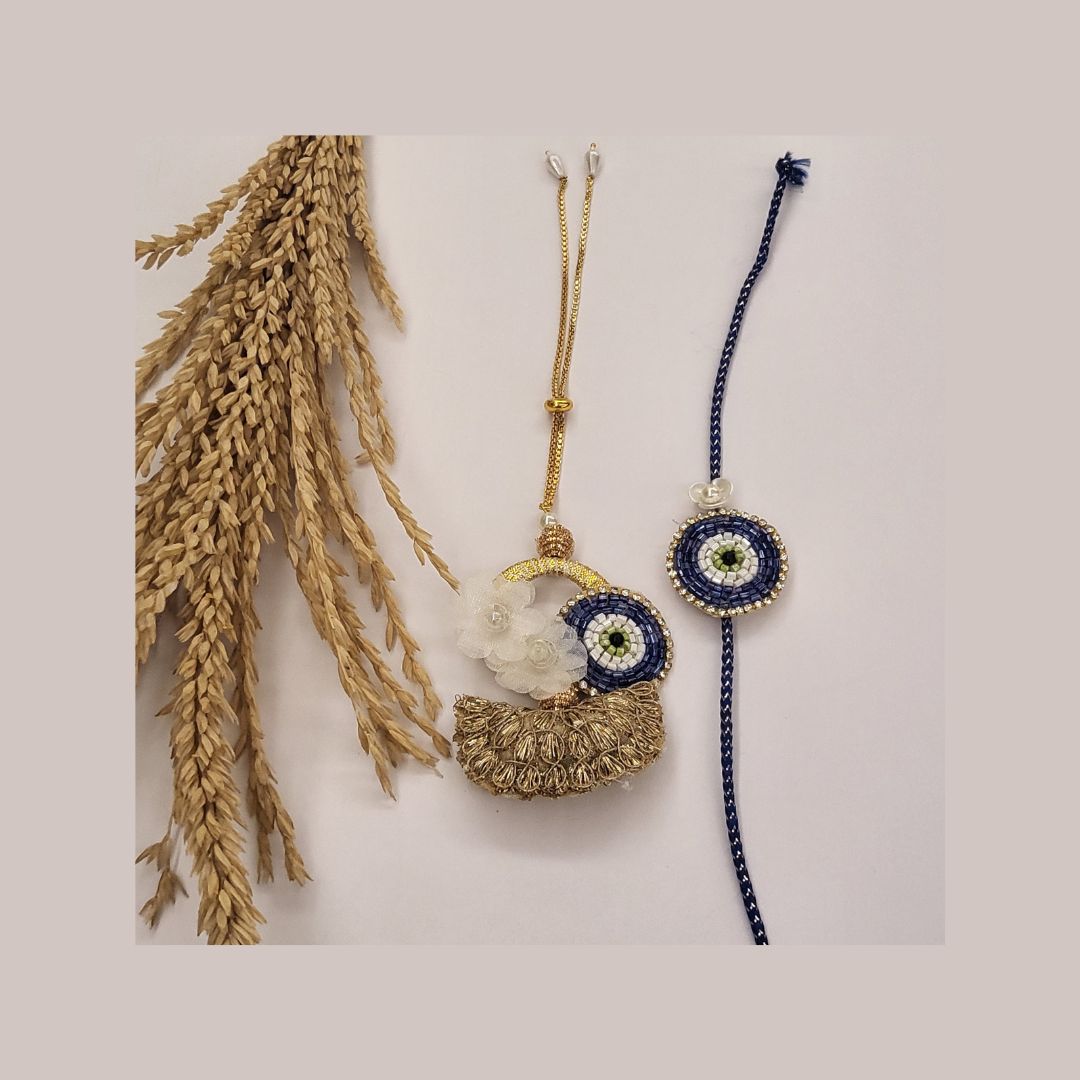 Crafted from premium quality silk thread and adorned with gold-plated beads, this pair Rakhi is a testament to fine craftsmanship and durability. Each component is carefully selected to ensure longevity, making this Rakhi a cherished keepsake for years to come.
