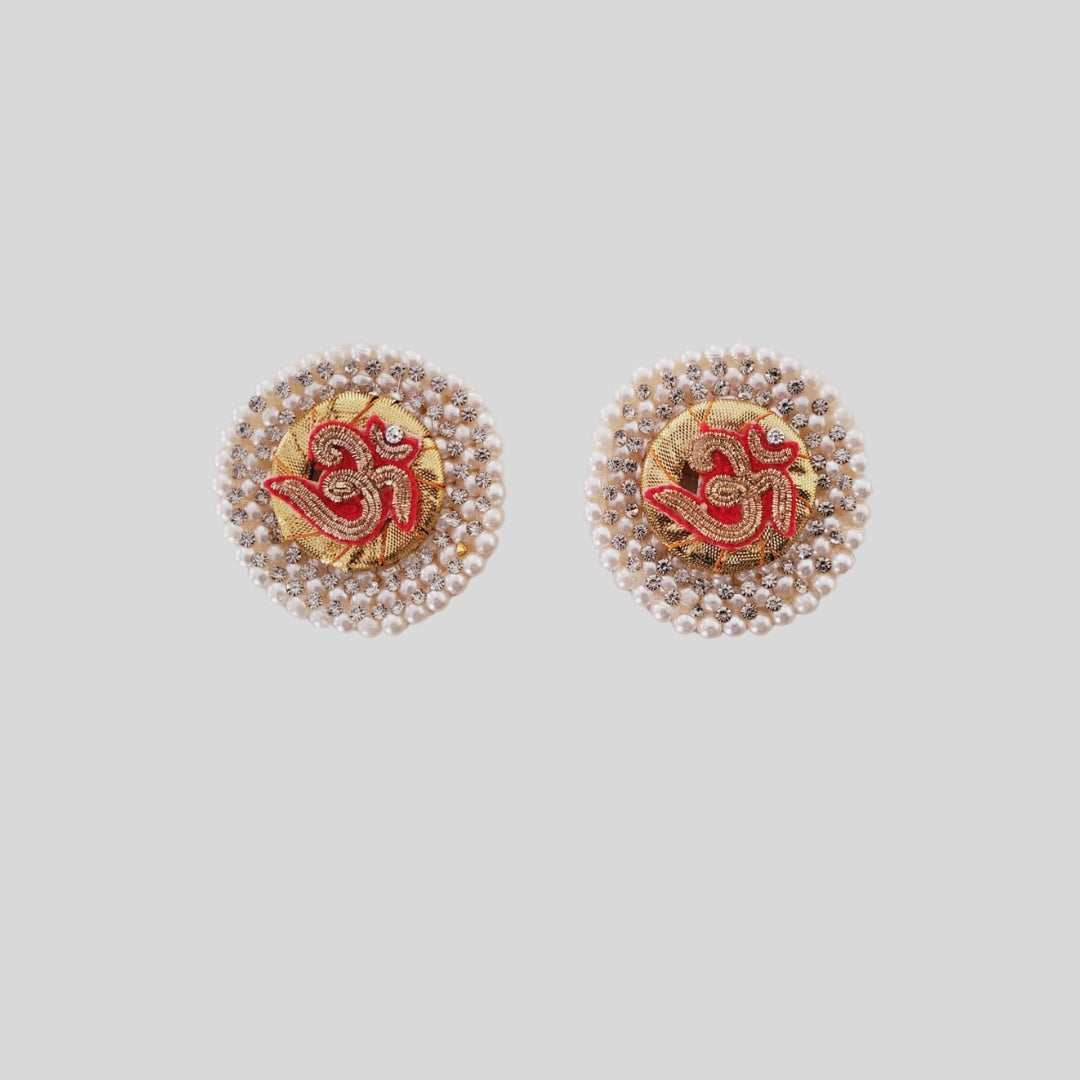 Materials - pearl ring, gota ring, embroidered om.